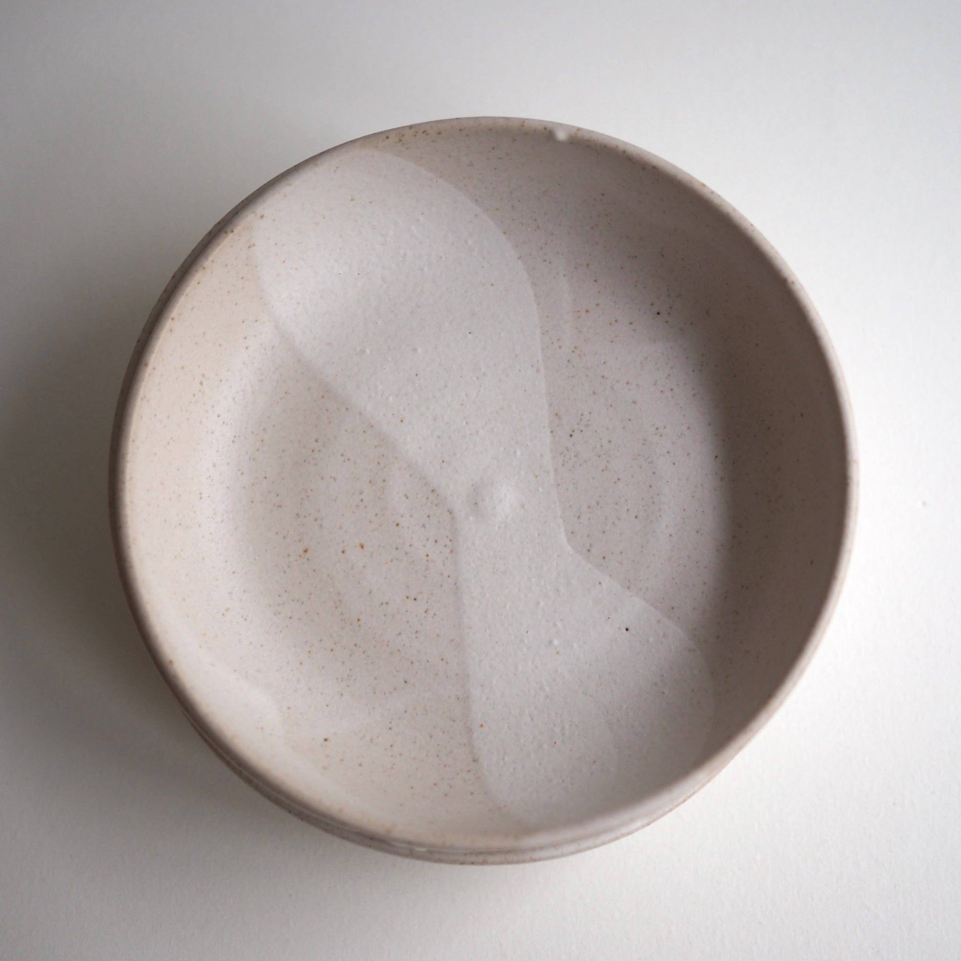 Assiettes creuses en grès pyrité , émail blanc