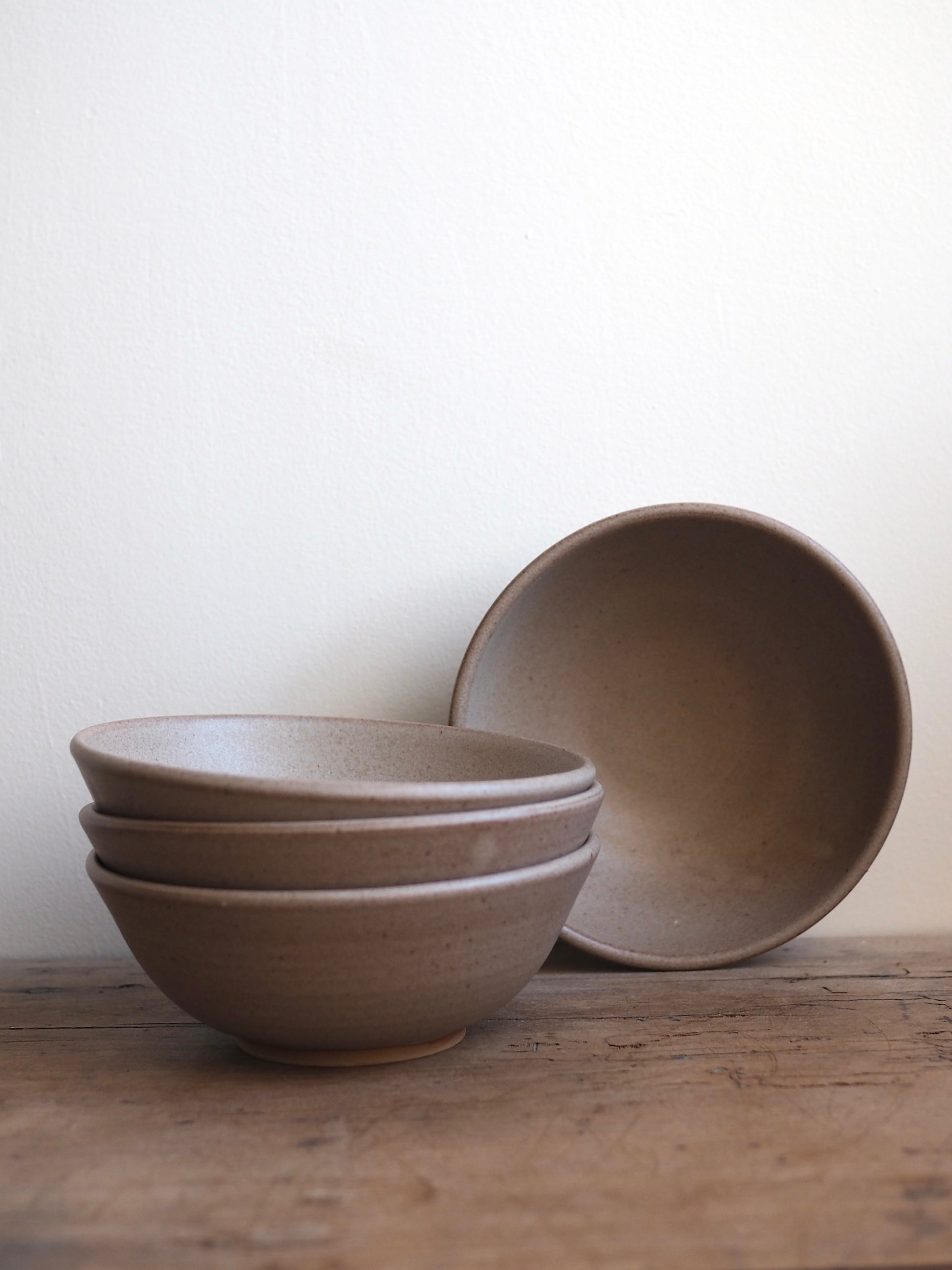 Bol en grès beige, émail gris