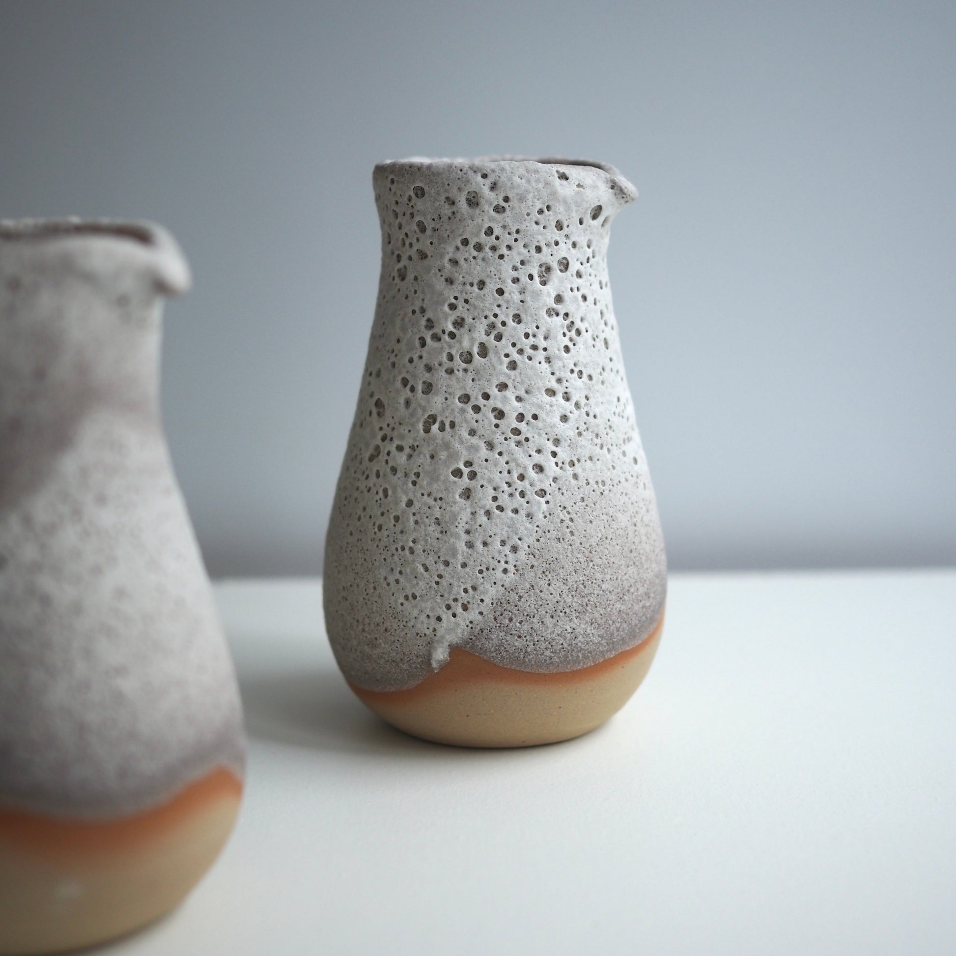 Pichet en grès beige, émail lunaire