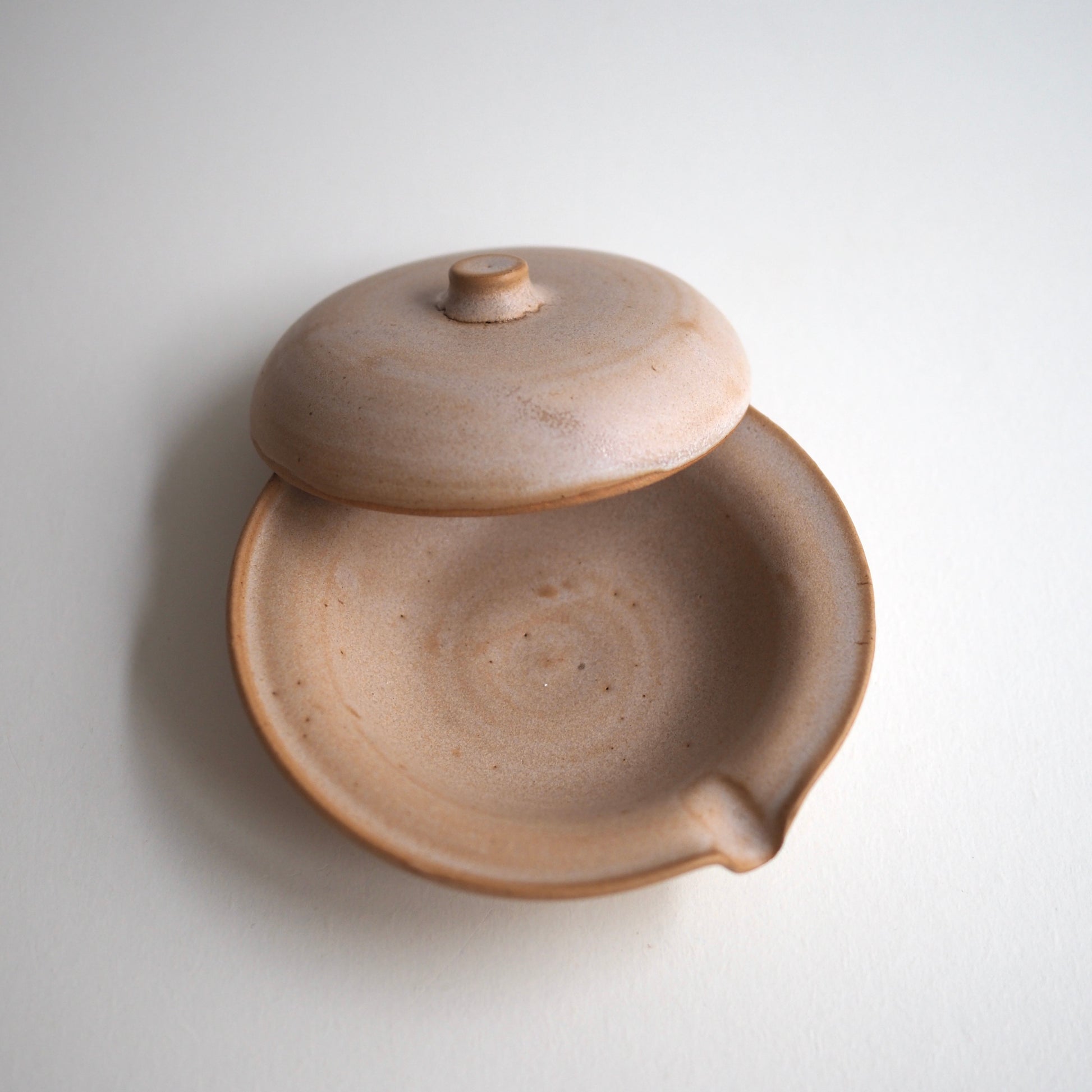 Théière en grès beige, émail beige